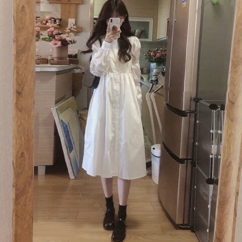 ワンピース白シャツ長袖ロングシャツ...