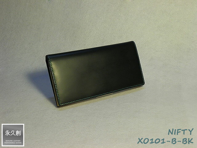 本革長財布ブラック/ブルーNIFT...