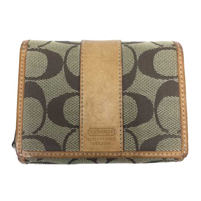【中古】コーチCOACHシグネチャー柄2つ折...