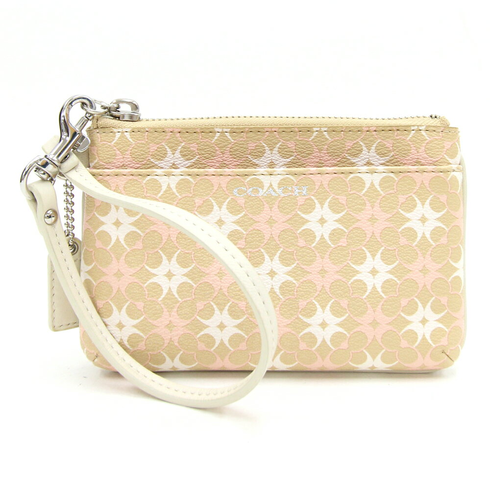 【中古】コーチポーチベージュピンクホワイトP...