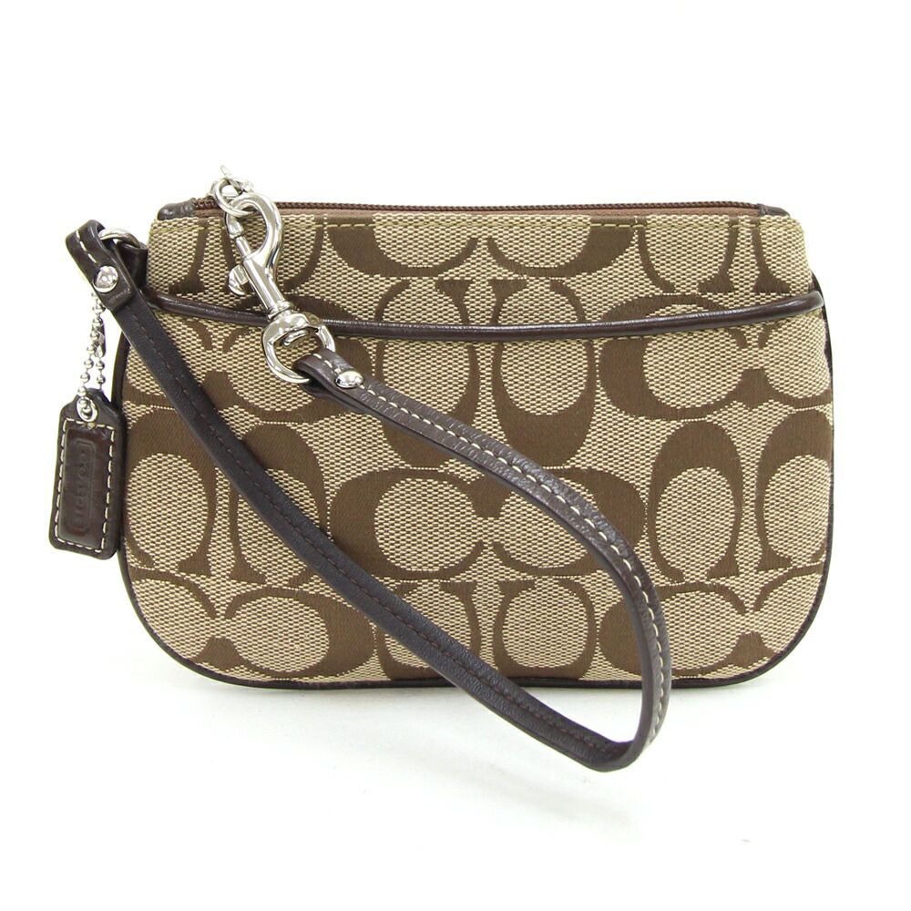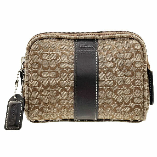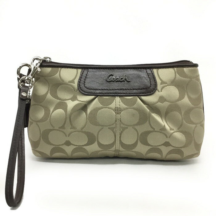 【中古】コーチポーチシグネチャーベージュブラ...