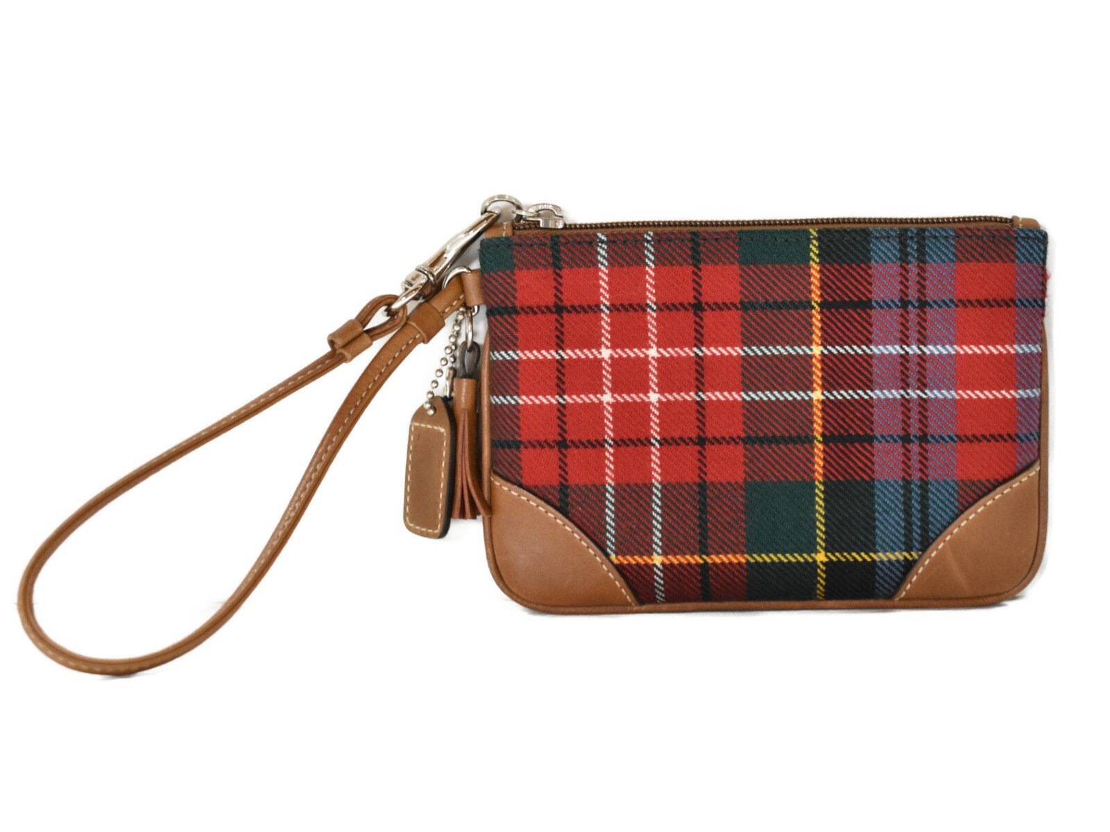 【中古】COACHコーチポーチレッド×ブラウ...