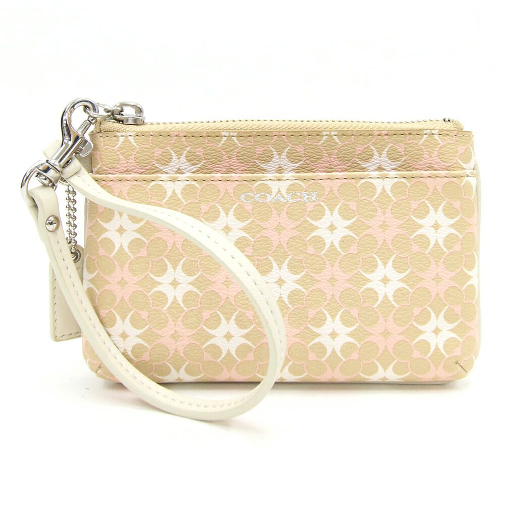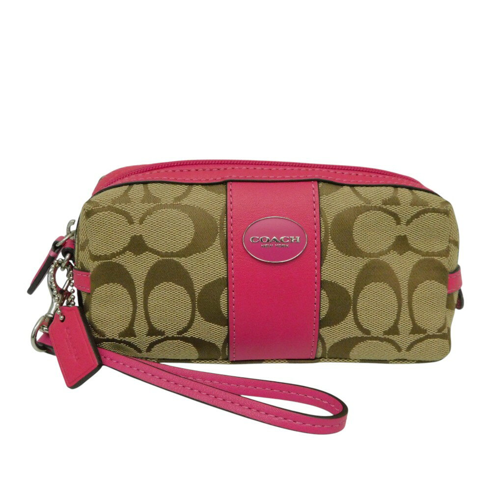 【中古】コーチミニポーチベージュピンクシグネ...