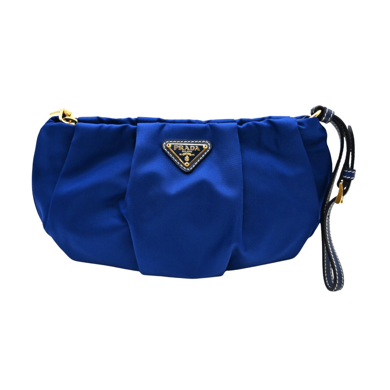 【中古】PRADAプラダナイロンポーチブルー...