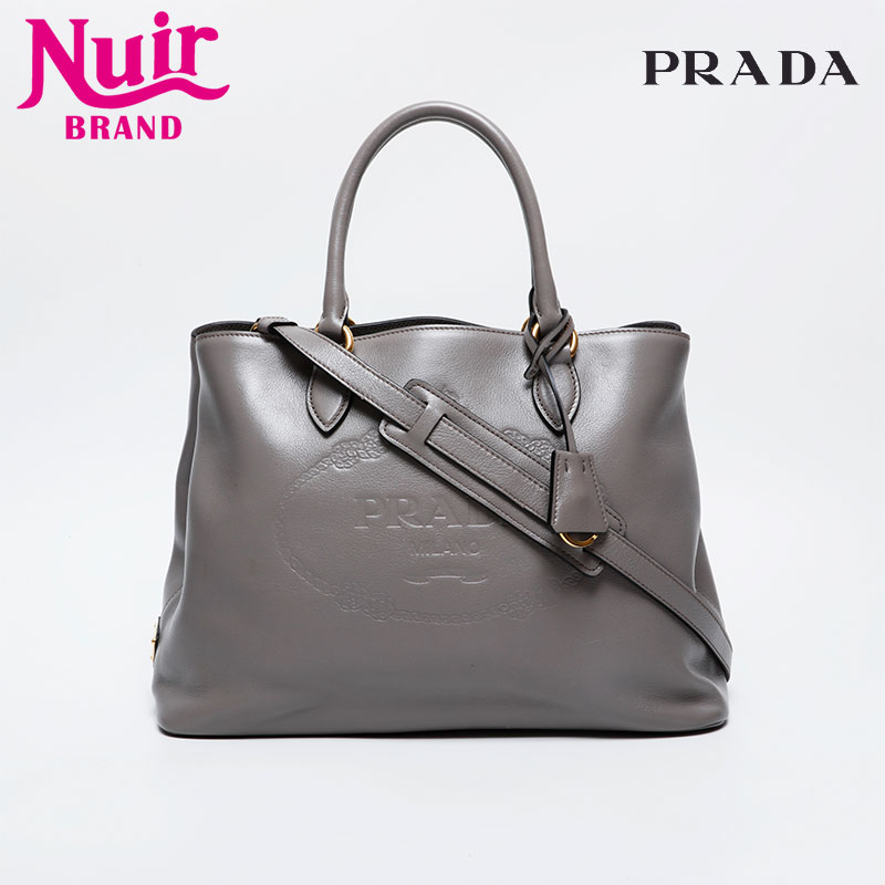 【中古】プラダPRADAロゴ型押しレザー2w...