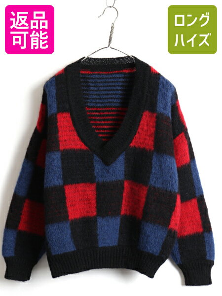 【中古】70sビンテージ★Vネックブロックチ...