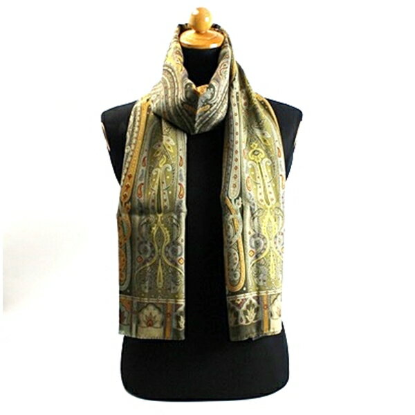 【中古】エトロウールシルク大判ストールカーキ...