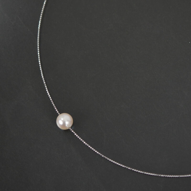 【中古】一粒パールワイヤーネックレスK10W...