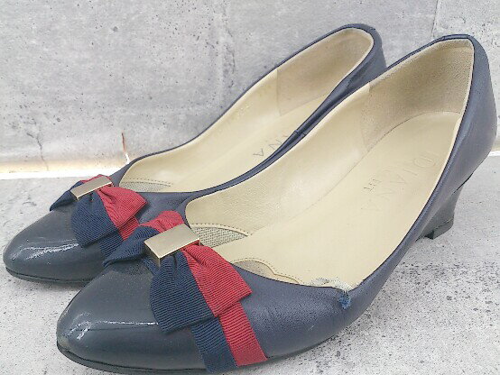 【中古】ダイアナパンプスラウンドトゥウエッジ...