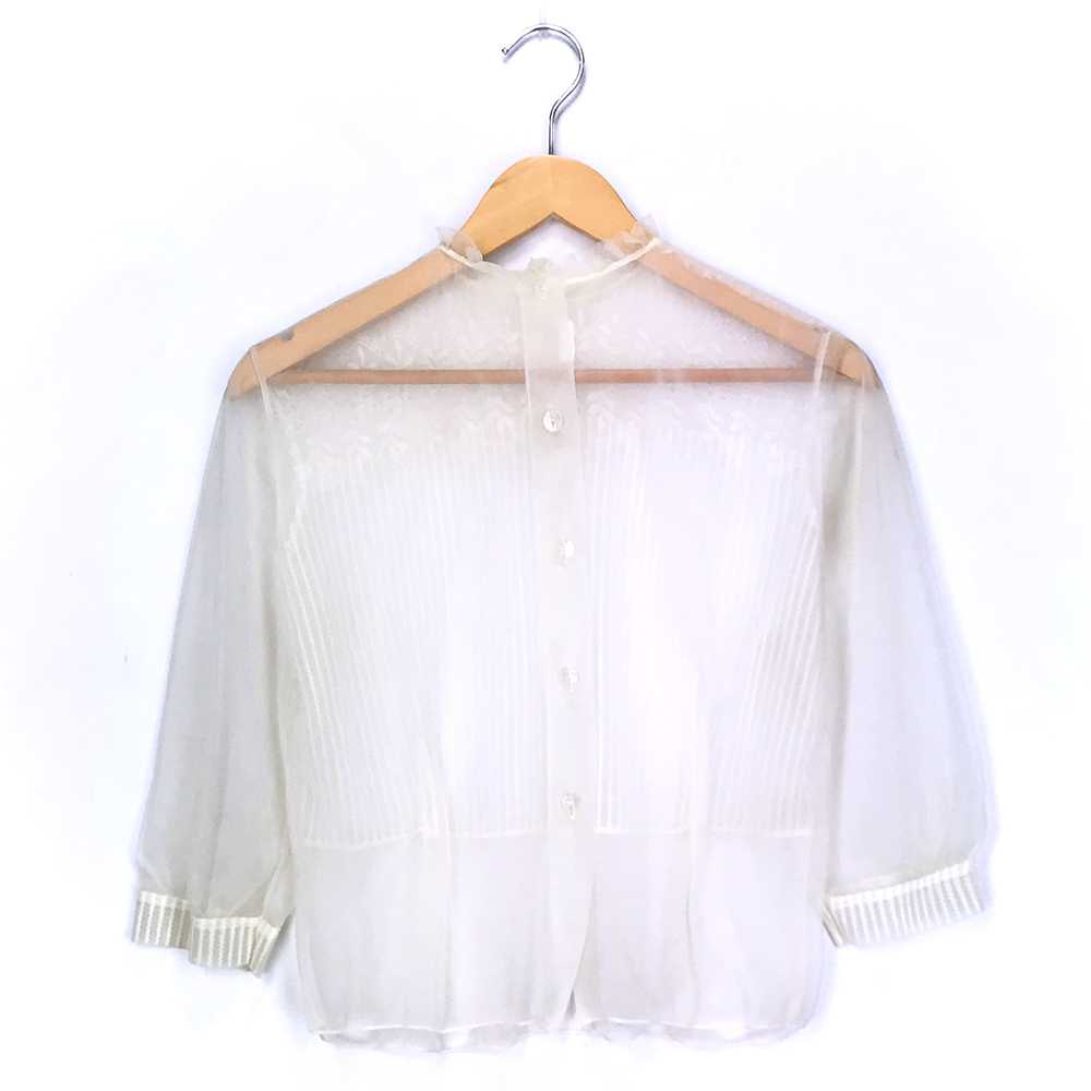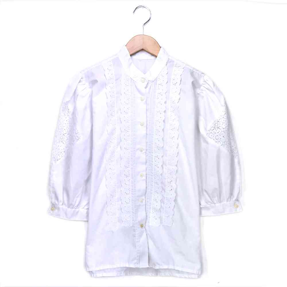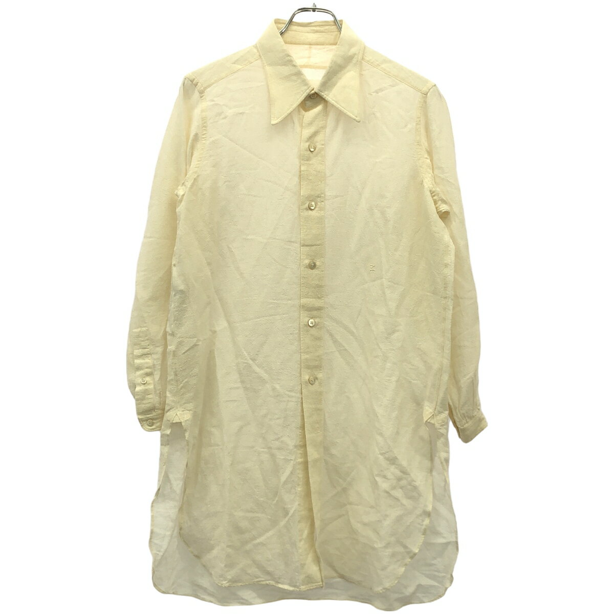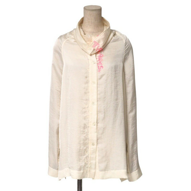 【中古】ホワイトブラウスホワイトノーカラー刺...