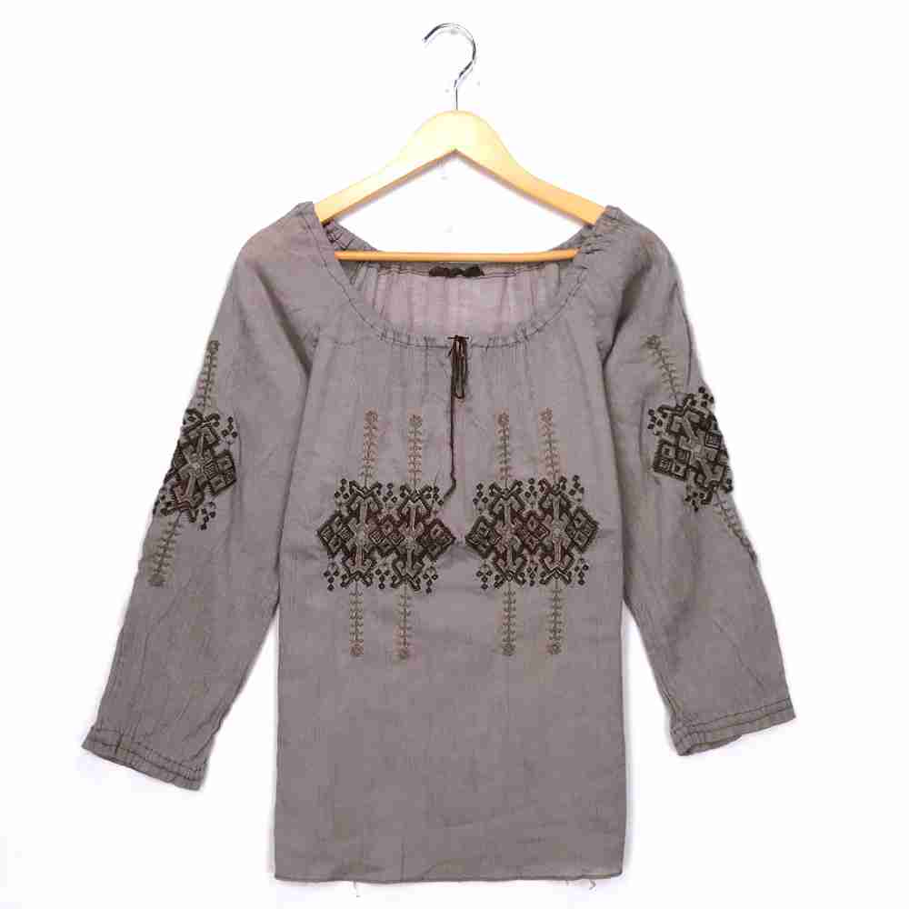 【中古】チュニックグレー長袖刺繍レディースガ...