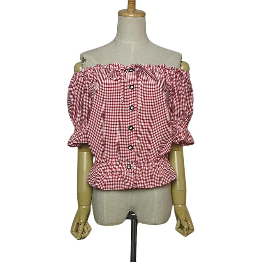 【中古】 刺繍入りチェック柄チロルブラウスレ...