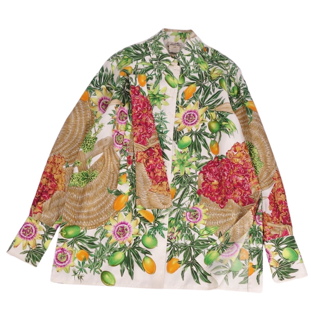 【中古】HERMESエルメス総柄シルクブラウ...