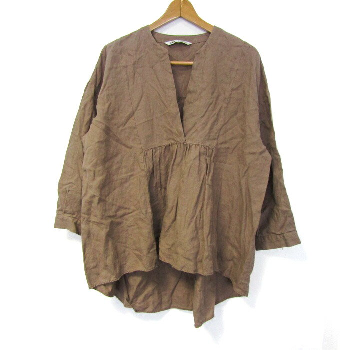 【中古】ザラ長袖カットソーリネンシャツプルオ...