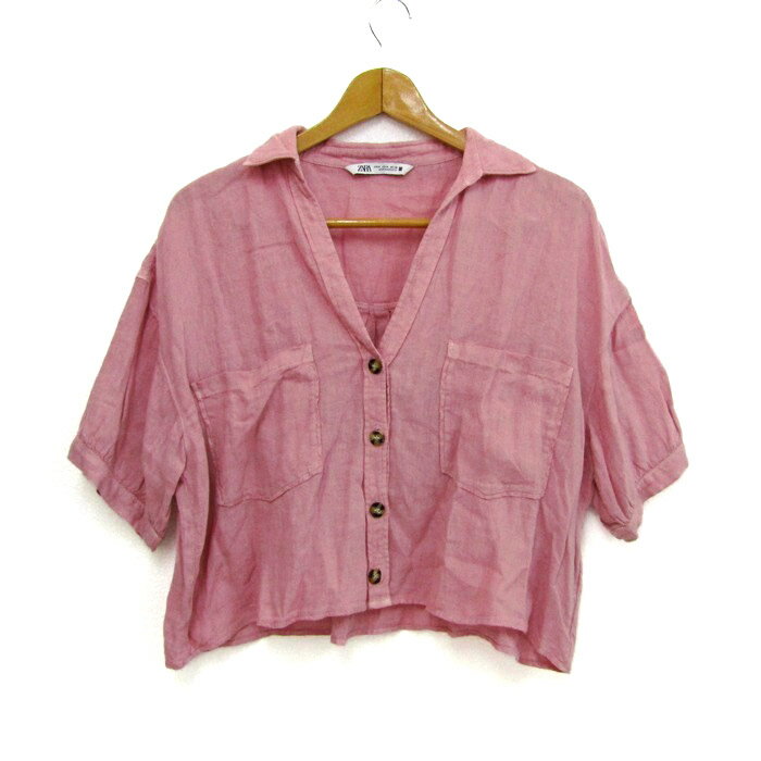 【中古】ザラ半袖リネンシャツトップスレディー...