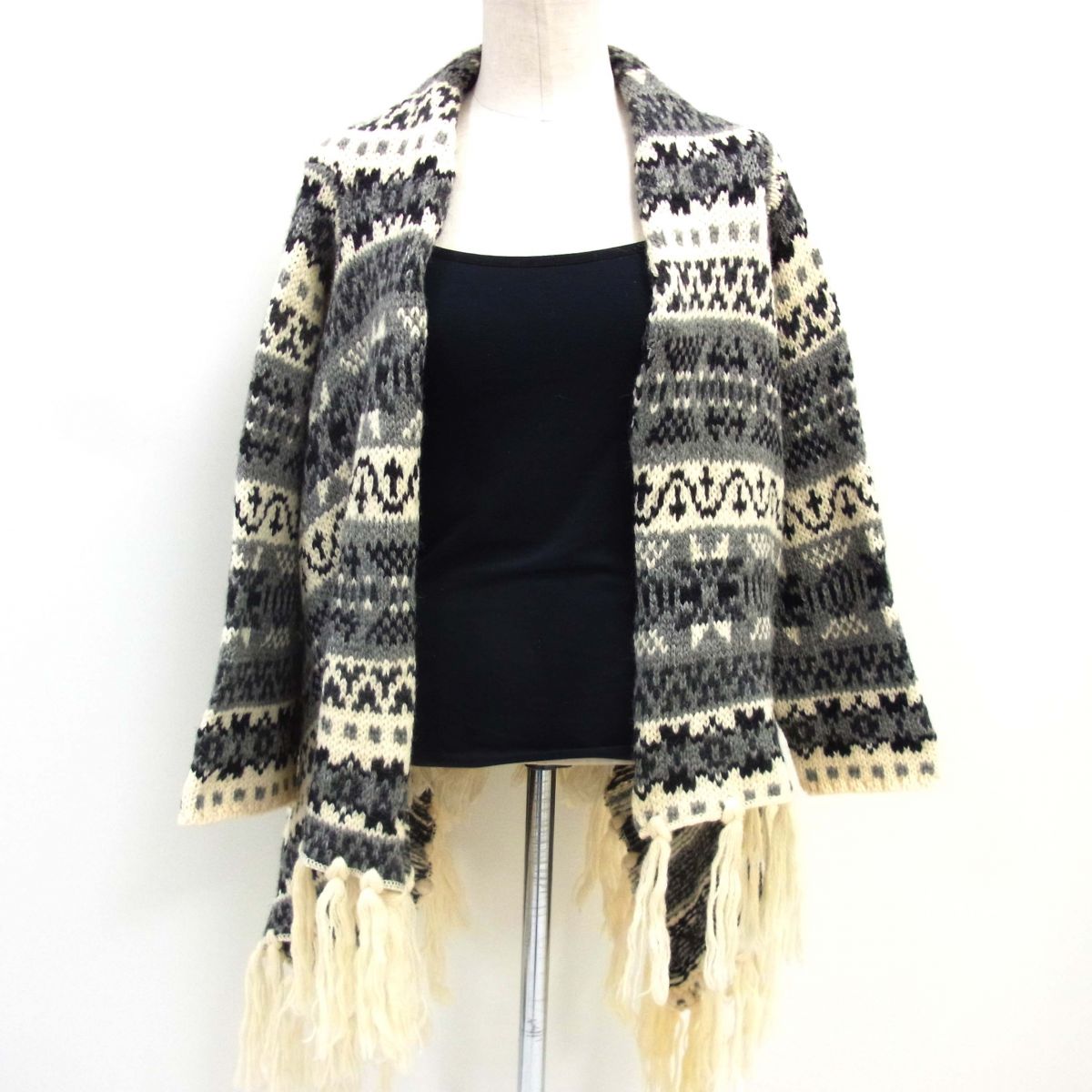【中古】古着Y'sワイズウール長袖フリンジポ...