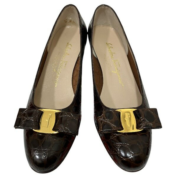 【中古】フェラガモパンプスヴェラリボンクロコ...