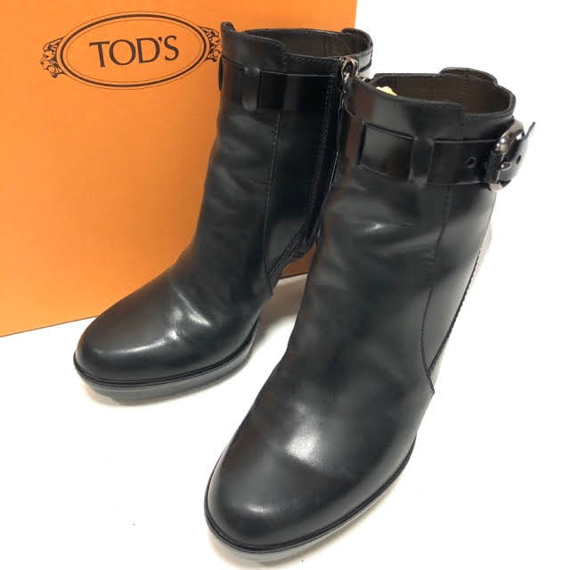 【中古】トッズショートブーツレザーブラック3...