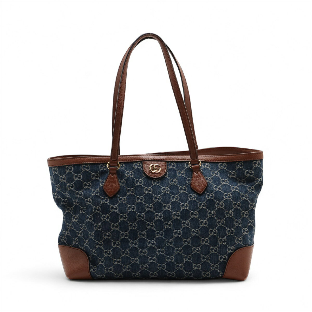 【中古】 グッチGGデニムデニムxレザートー...