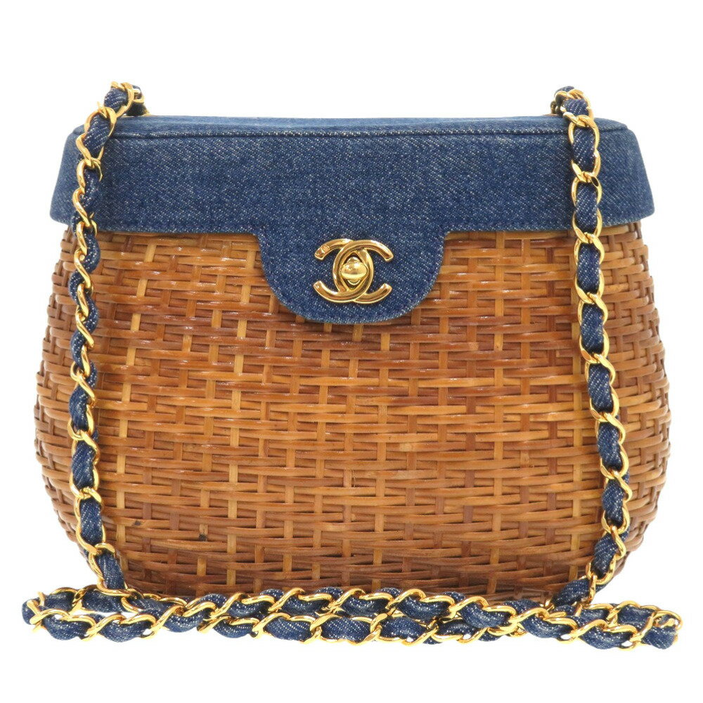 【中古】美品シャネルカゴバッグデニムストロー...
