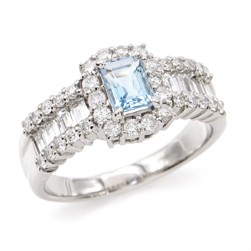 【中古】9号アクアマリン0.58ctダイヤモ...