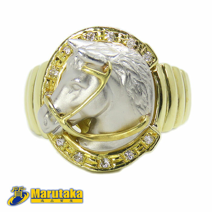【中古】K18Pt900馬ホースリング16号...