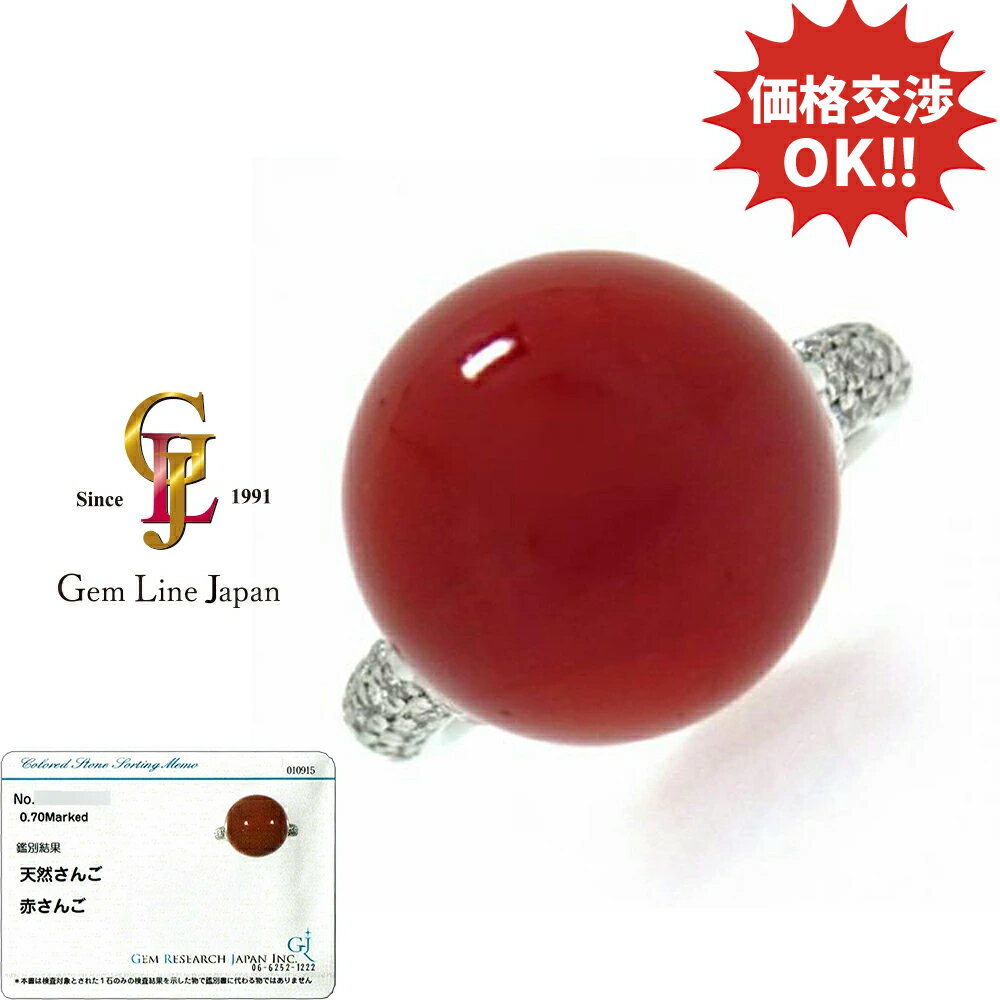 【中古】大粒赤サンゴ14mmUPダイヤ0.7...