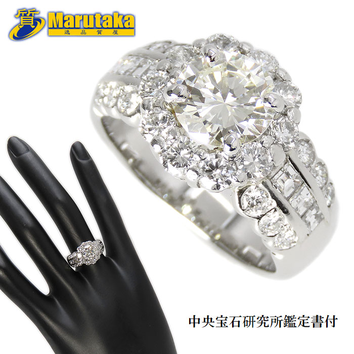 【中古】Pt900中央1.558ctダイヤモ...