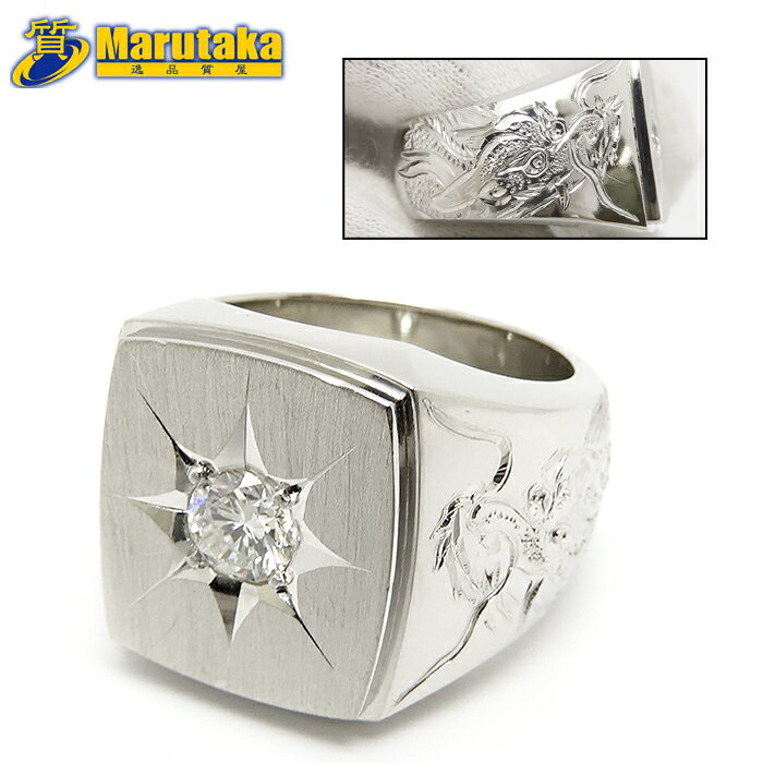 【中古】龍彫柄印台ダイヤモンドプラチナリング...