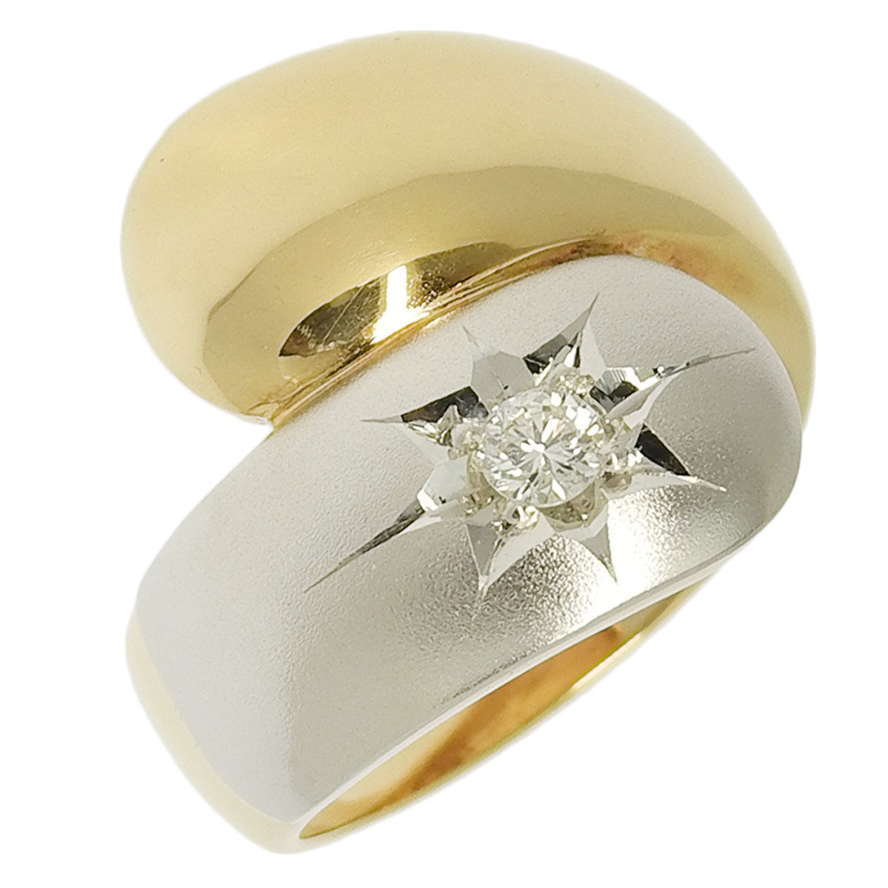 【中古】 新品同様ウェーブリング指輪K18ピ...