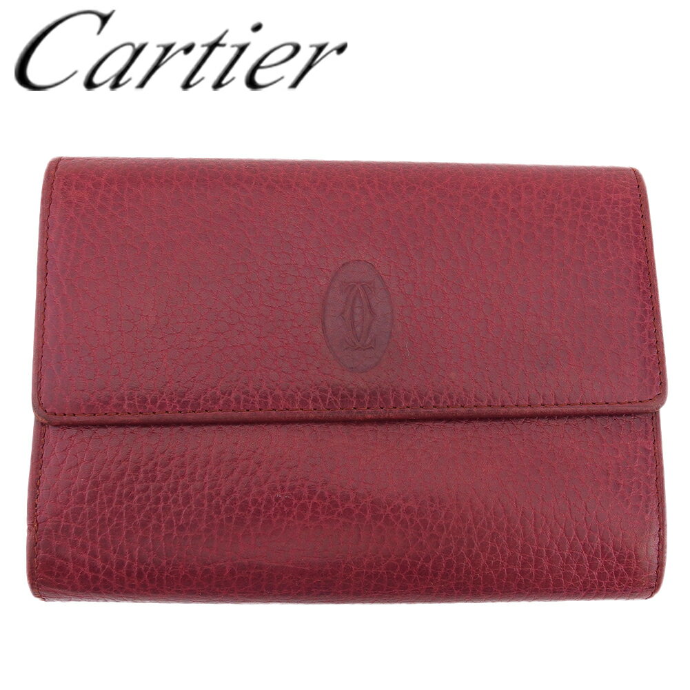 【中古】 カルティエ三つ折り財布ガマ口中長財...