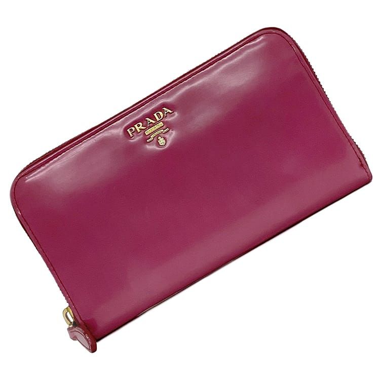 【中古】プラダラウンドファスナー長財布ピンク...